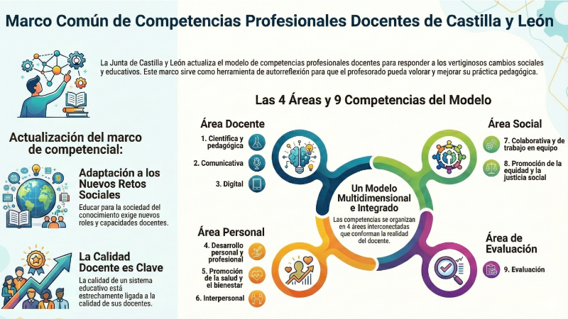 La Consejería de Educación de Castilla y León estableció en el curso 2009-2010 un primer Modelo de Competencias del Profesorado que ha sido pionero y referente para la detección de necesidades, la planificación y el desarrollo de actuaciones relacionadas con la formación permanente del profesorado.