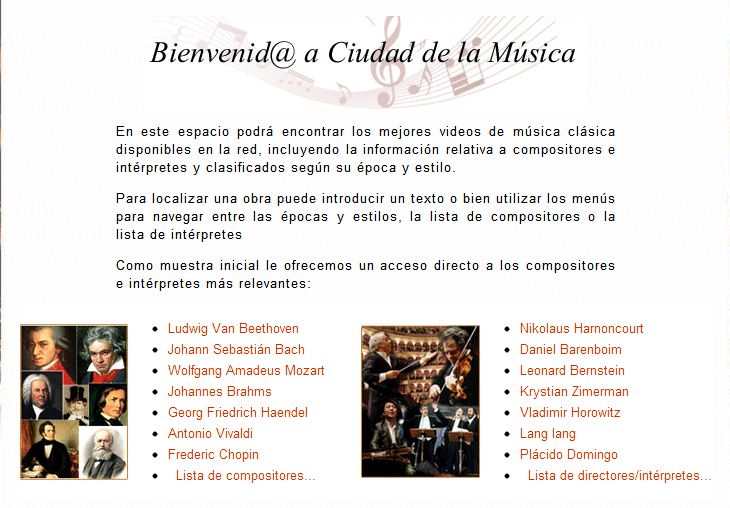 En este espacio podrá encontrar los mejores videos de música clásica disponibles en la red, incluyendo la información relativa a compositores e intérpretes y clasificados según su época y estilo.